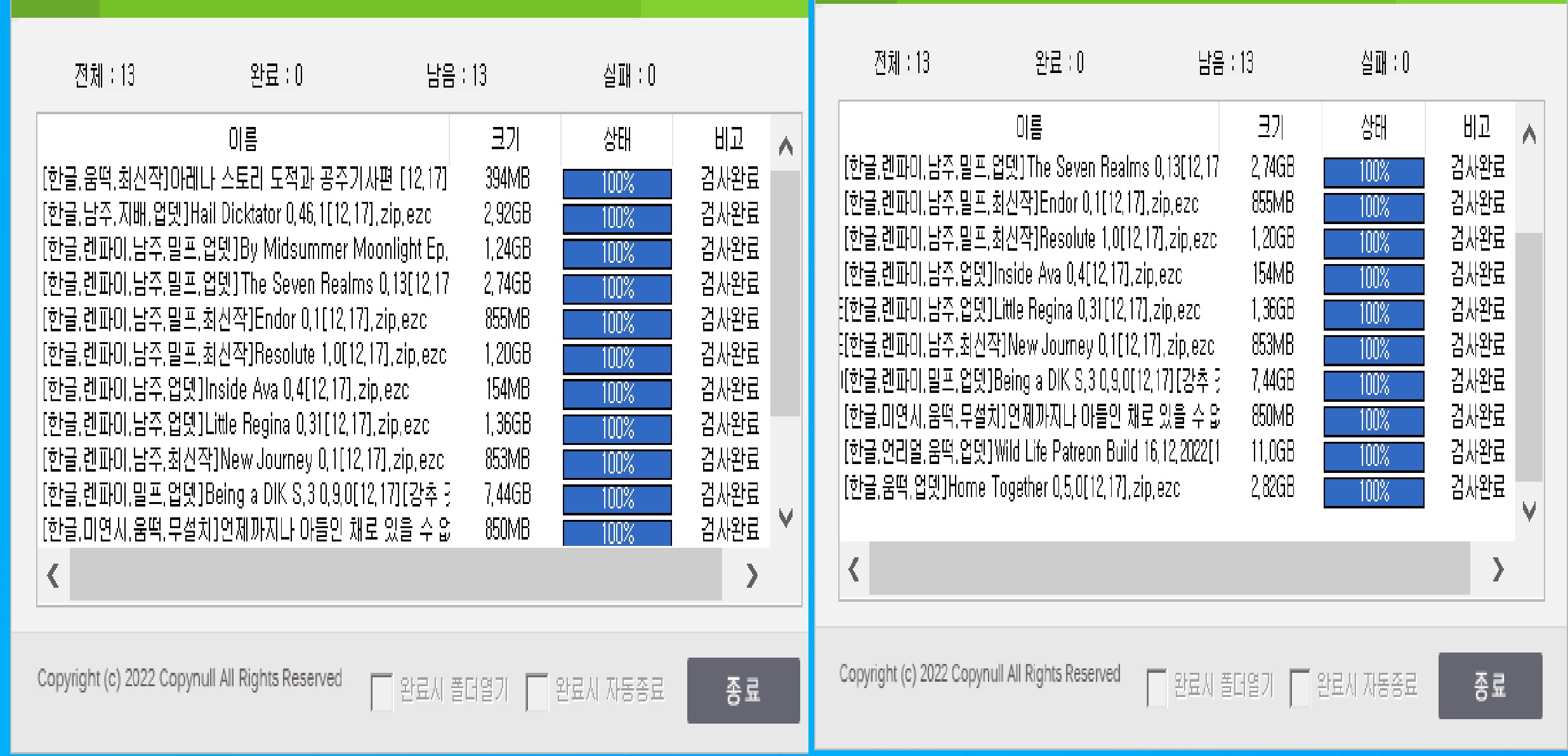 파일캐스트 다운로더 설치하기 모든 브라우저 호환 용량 17MB 내 PC는 이미 파일캐스트가 설치되어있습니다. 설치 후 다운로드가 되지 않는다면 재설치를 권장합니다.※ ActiveX와 애드웨어가 없는 파일캐스트는 빠르고 가볍습니다. 다운로드가 되지 않는다면 반드시 파일캐스트를 설치해주세요.