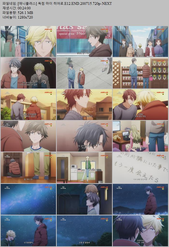 [애니플러스] 독점 마이 히어로.E12.END.200715.720p-NEXT.mp4 | 526.1 M | 00:24:00 | 1280x720 |