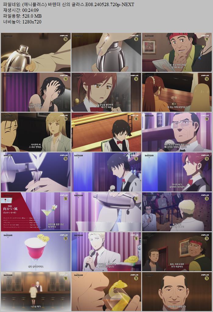 | (애니플러스) 바텐더 신의 글라스.E08.240528.720p-NEXT.mp4 | 528 M | 00:24:09 | 1280x720 |