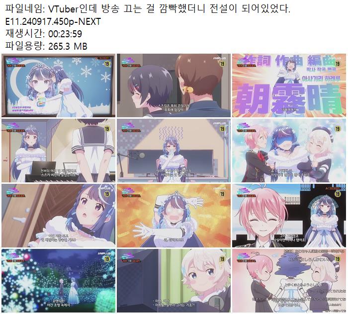 | VTuber인데 방송 끄는 걸 깜빡했더니 전설이 되어있었다.E11.240917.450p-NEXT.mp4 | 265.3 M | 00:23:59 | 800x450 |