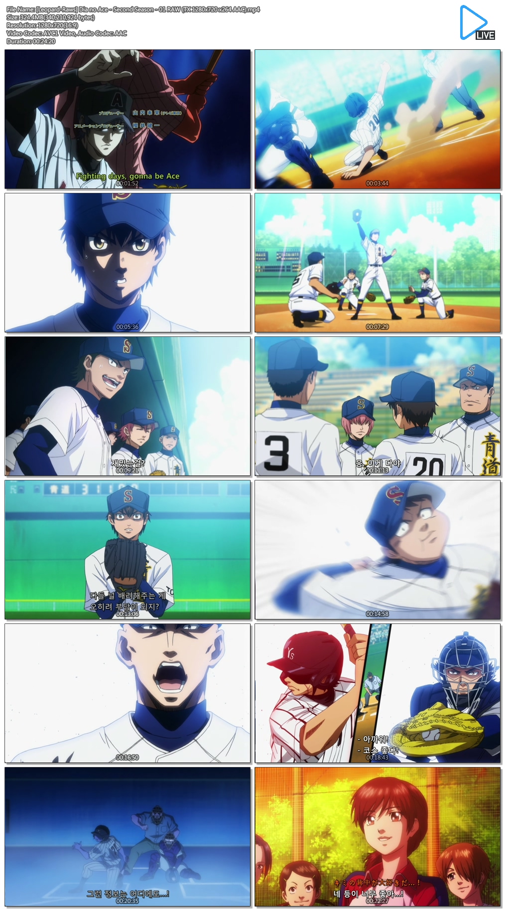 | [Leopard-Raws] Dia no Ace - Second Season - 01 RAW (TX 1280x720 x264 AAC).mp4 | 324.5 M | 00:24:20 | 800X450 |