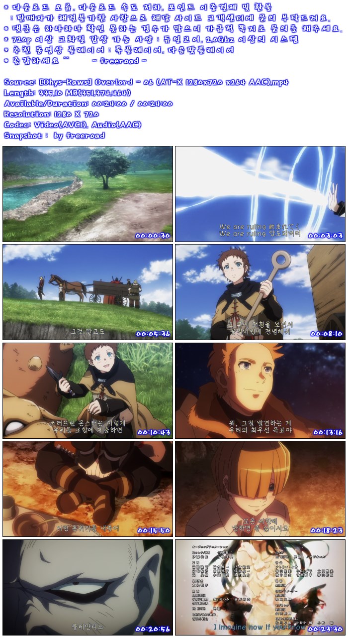 | [Ohys-Raws] Overlord - 06 (AT-X 1280x720 x264 AAC).mp4 | 335.1 M | 00:24:00 | 800X450 |