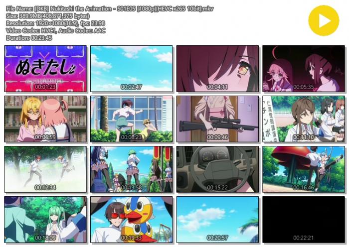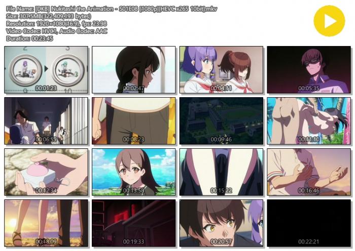 | [DKB] Nukitashi the Animation - S01E01 [1080p][HEVC x265 10bit].mkv | 315.7 M | 00:23:40 | 1920x1080 |