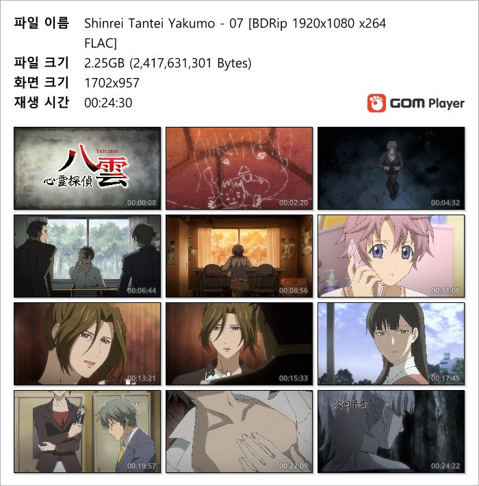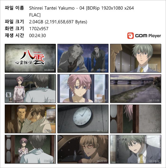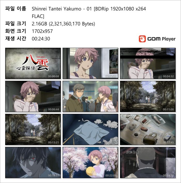 | Shinrei Tantei Yakumo - 01 [BDRip 1920x1080 x264 FLAC].mkv | 2.2 G | 00:24:30 | 1920x1080 |