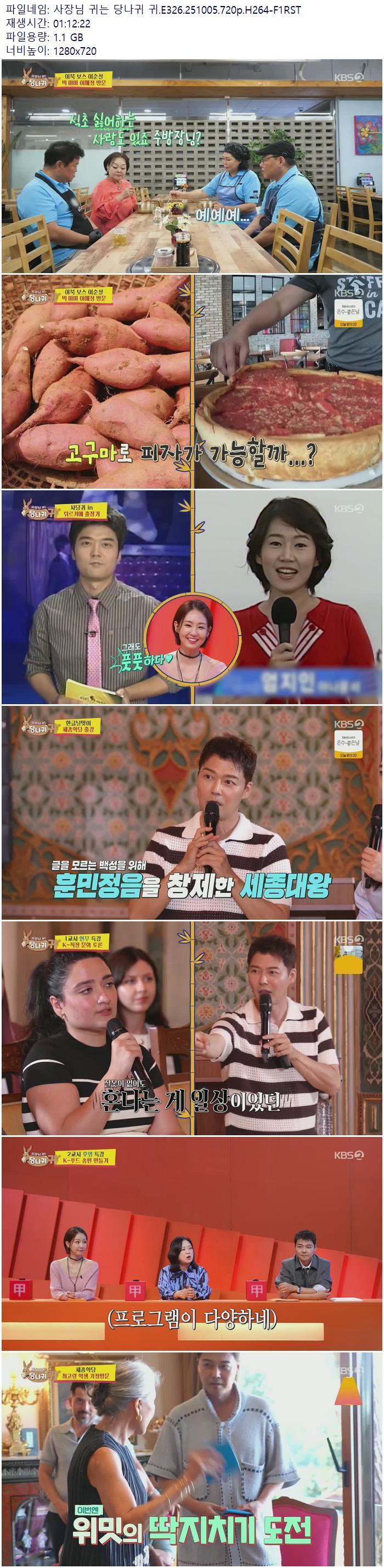 사장님 귀는 당나귀 귀.E326.251005.720p.H264-F1RST.mp4 | 1.1 G | 01:12:00 | 1280x720 |