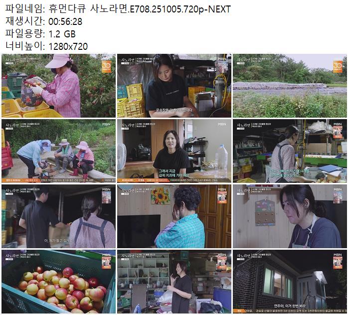 휴먼다큐 사노라면.E708.251005.720p-NEXT.mp4 | 1.2 G | 00:56:28 | 1280x720 |