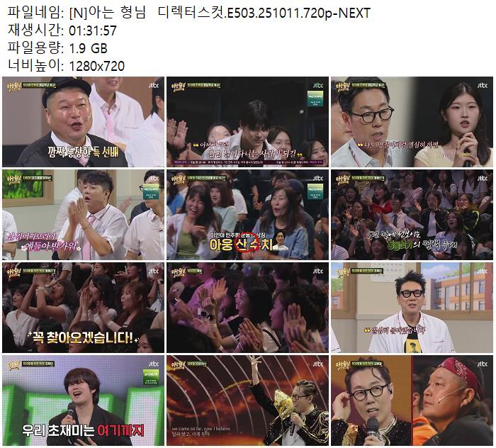 [N]아는 형님 디렉터스컷.E503.251011.720p-NEXT.mp4 | 1.9 G | 01:31:00 | 1280x720 |