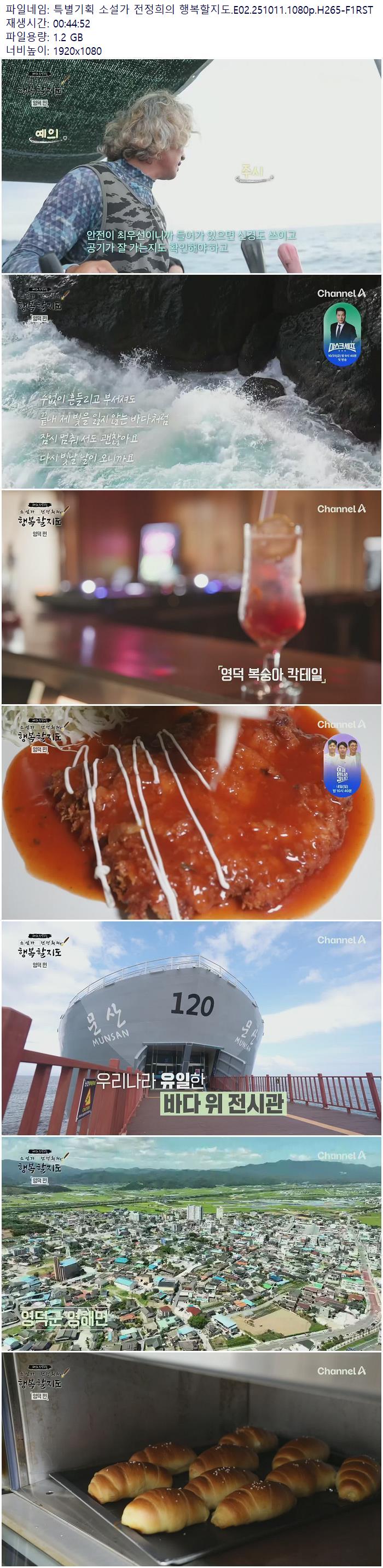 특별기획 소설가 전정희의 행복할지도.E02.251011.1080p.H265-F1RST.mp4 | 1.2 G | 00:44:52 | 1920x1080 |