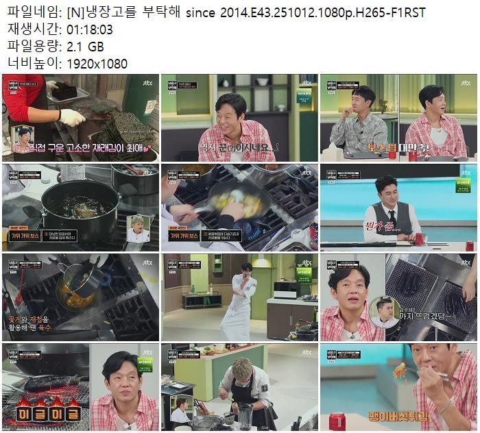 [N]냉장고를 부탁해 since 2014.E43.251012.1080p.H265-F1RST.mp4 2.1 G 01:18:00 1920x1080
