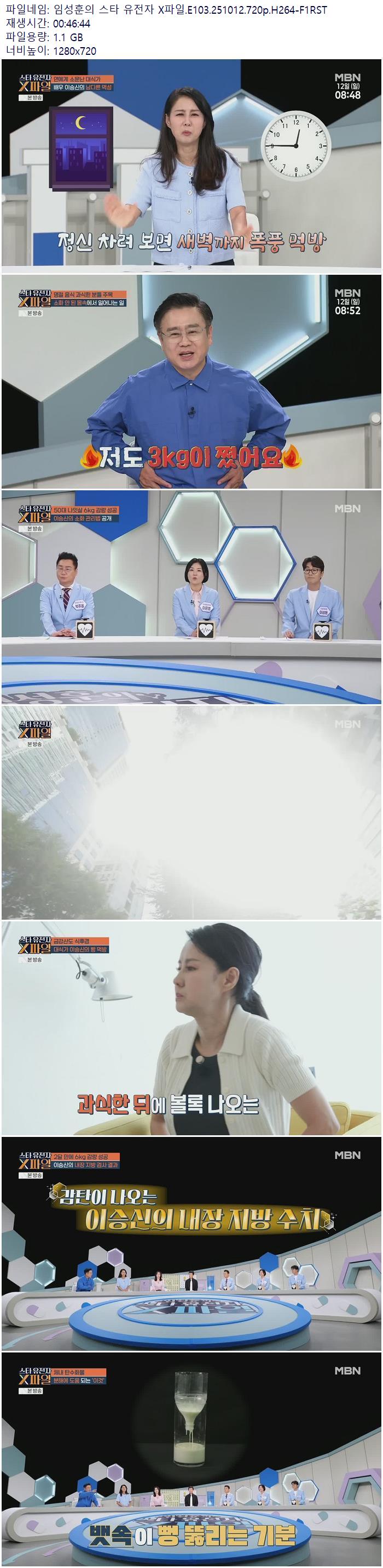 임성훈의 스타 유전자 X파일.E103.251012.720p.H264-F1RST.mp4 | 1.1 G | 00:46:44 | 1280x720 |
