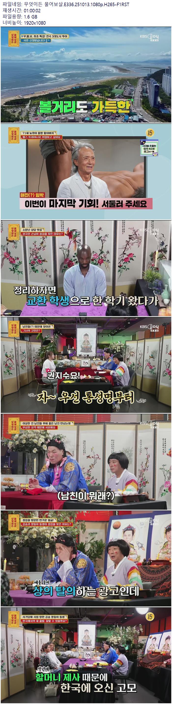 무엇이든 물어보살.E336.251013.1080p.H265-F1RST.mp4 | 1.6 G | 01:00:00 | 1920x1080 |