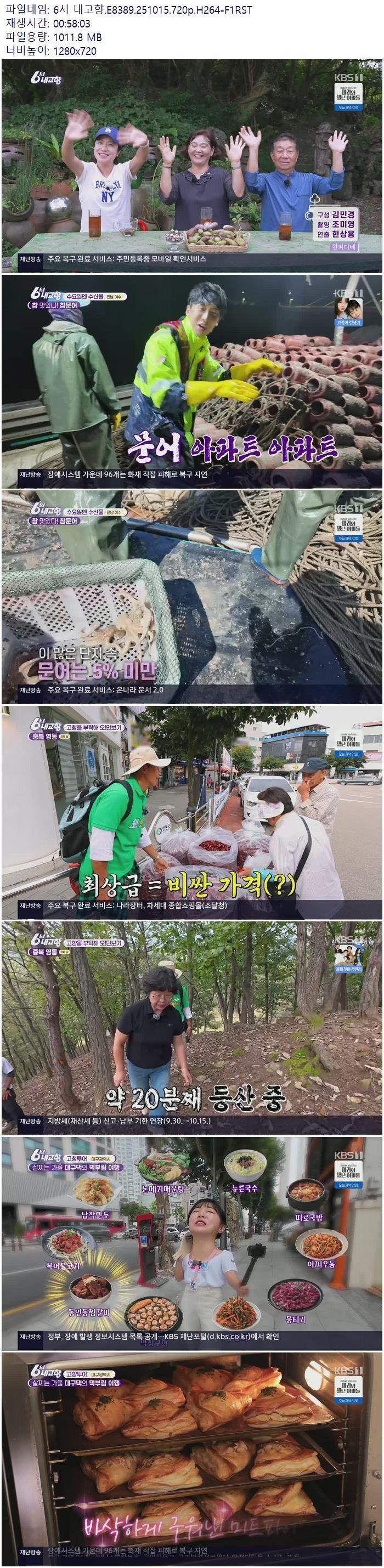 6시 내고향.E8389.251015.720p.H264-F1RST.mp4 | 1011.8 M | 00:58:03 | 1280x720 |