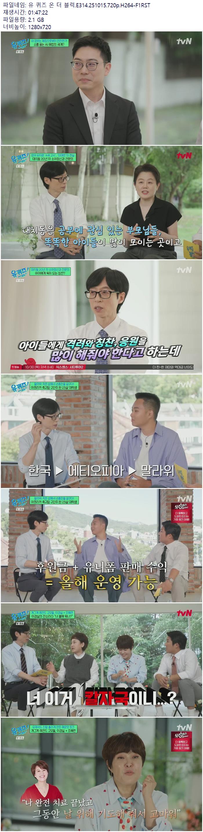 유 퀴즈 온 더 블럭.E314.251015.720p.H264-F1RST.mp4 | 2.1 G | 01:47:00 | 1280x720 |