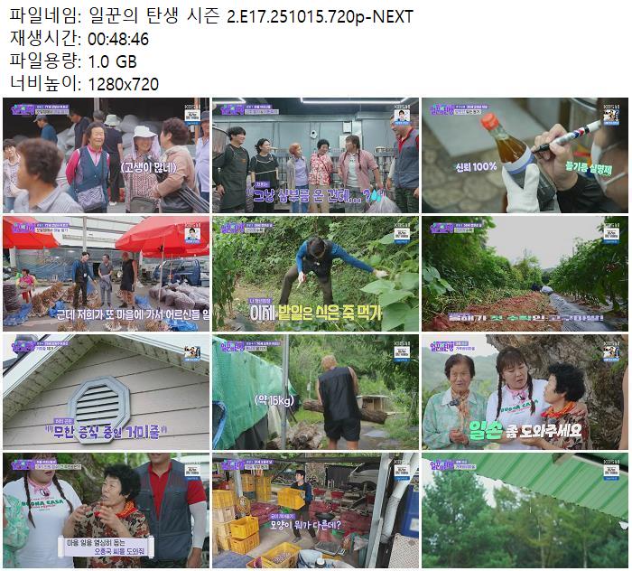 | 일꾼의 탄생 시즌 2.E17.251015.720p-NEXT.mp4 | 1 G | 00:48:46 | 1280x720 |