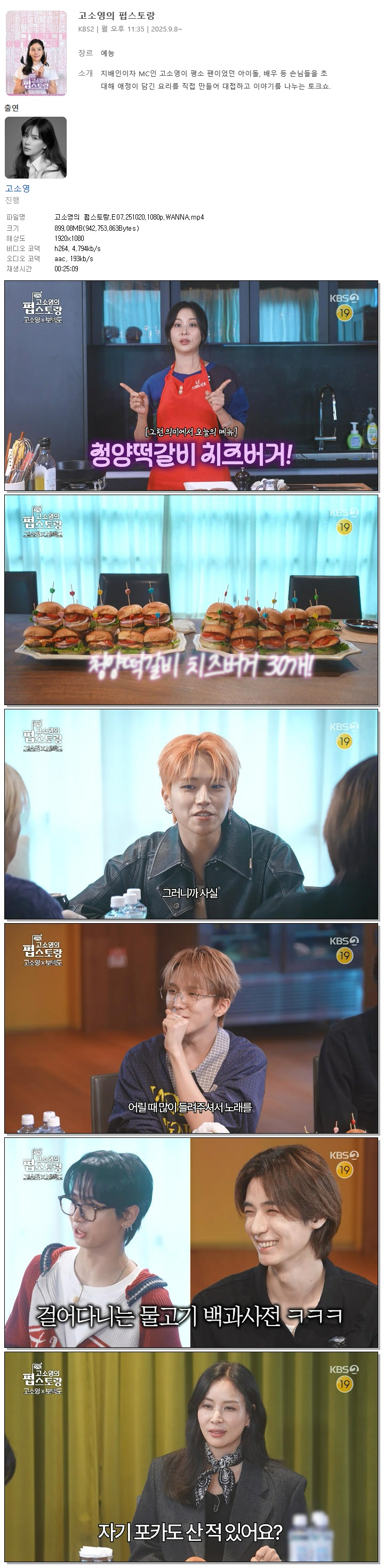 | [KBS2] 고소영의 펍스토랑.E07.251020.1080p.WANNA[보이넥스트도어].mp4 | 899.1 M | 00:25:09 | 1920x1080 |