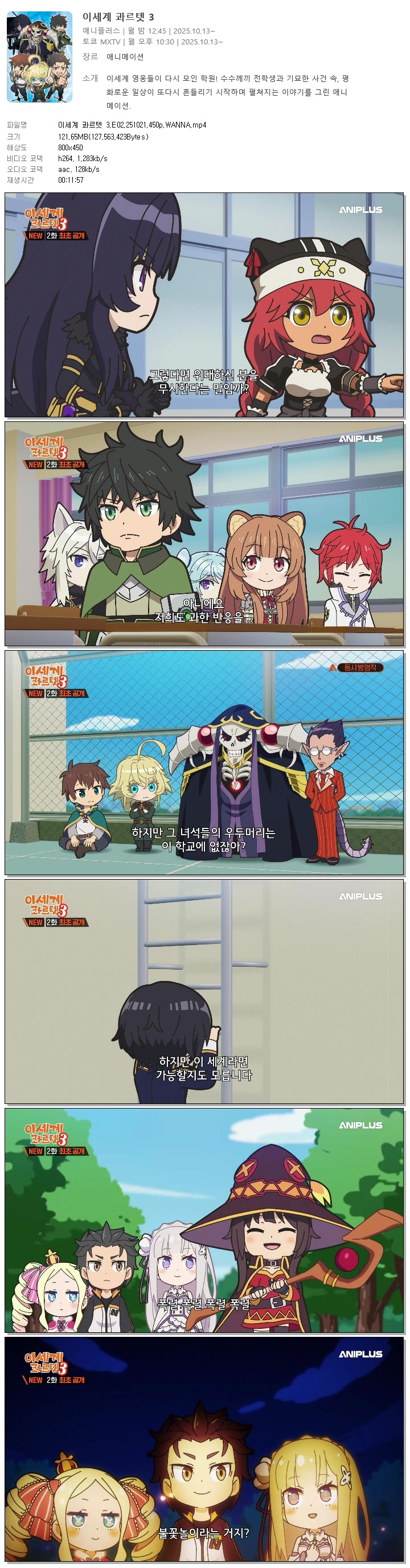 | 이세계 콰르텟 3.E02.251021.450p.WANNA.mp4 | 121.7 M | 00:11:57 | 800x450 |