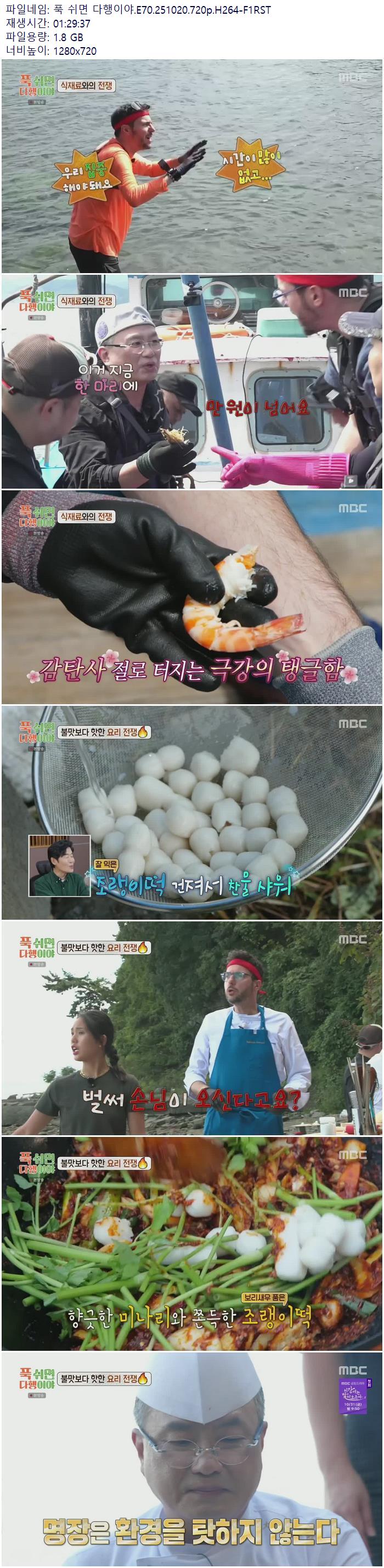 | 푹 쉬면 다행이야.E70.251020.720p.H264-F1RST.mp4 | 1.8 G | 01:29:00 | 1280x720 |