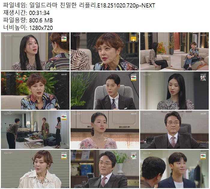 | 일일드라마 친밀한 리플리.E18.251020.720p-NEXT.mp4 | 800.6 M | 00:31:34 | 1280x720 |