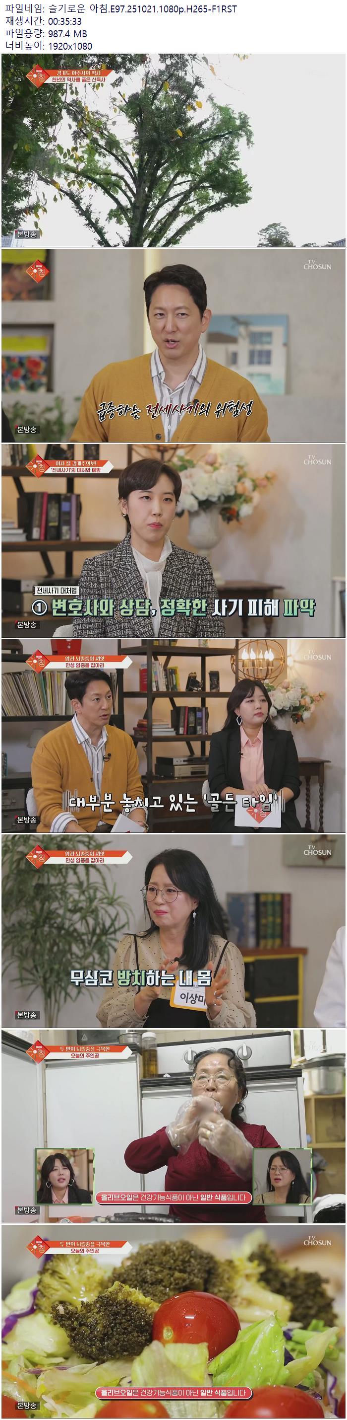 | 슬기로운 아침.E97.251021.1080p.H265-F1RST.mp4 | 987.4 M | 00:35:33 | 1920x1080 |