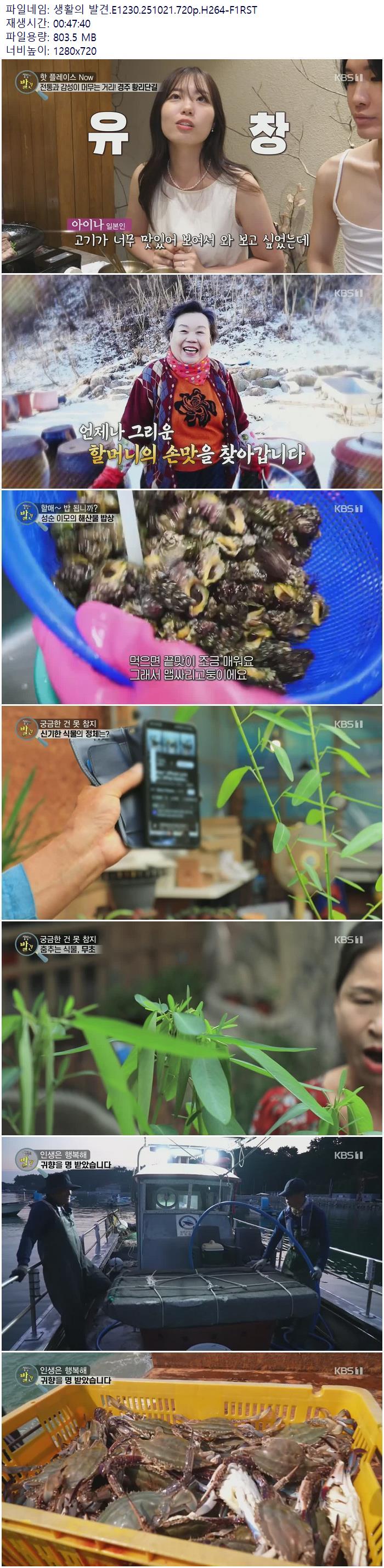 | 생활의 발견.E1230.251021.720p.H264-F1RST.mp4 | 803.5 M | 00:47:40 | 1280x720 |