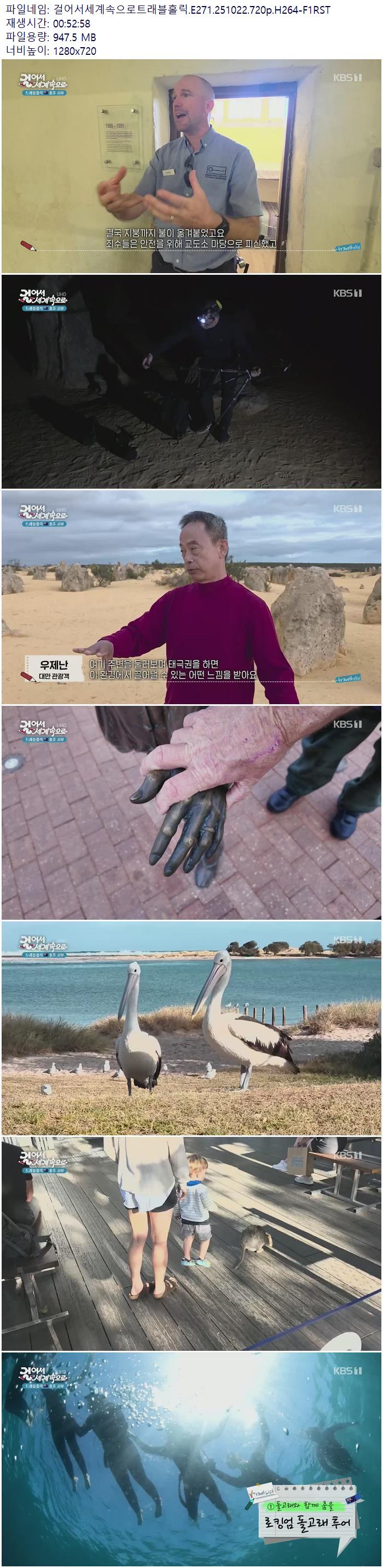 | 걸어서세계속으로트래블홀릭.E271.251022.720p.H264-F1RST.mp4 | 947.5 M | 00:52:58 | 1280x720 |