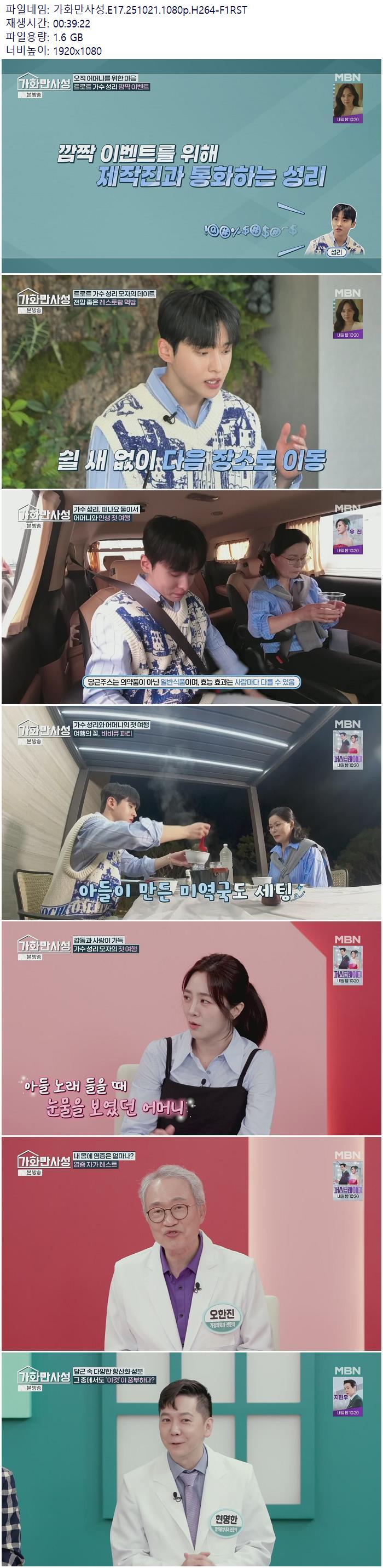 | 가화만사성.E17.251021.1080p.H264-F1RST.mp4 | 1.6 G | 00:39:22 | 1920x1080 |