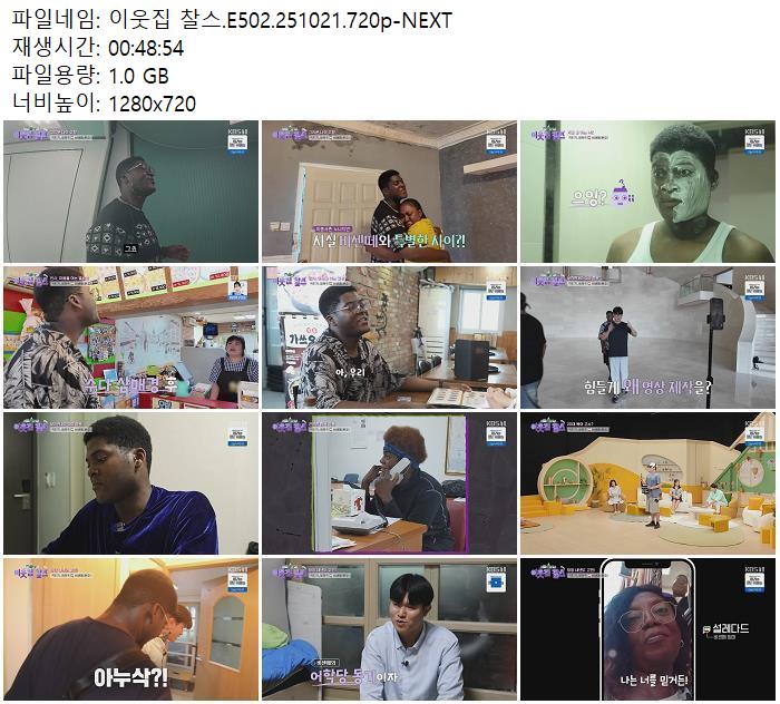 | 이웃집 찰스.E502.251021.720p-NEXT.mp4 | 1 G | 00:48:54 | 1280x720 |