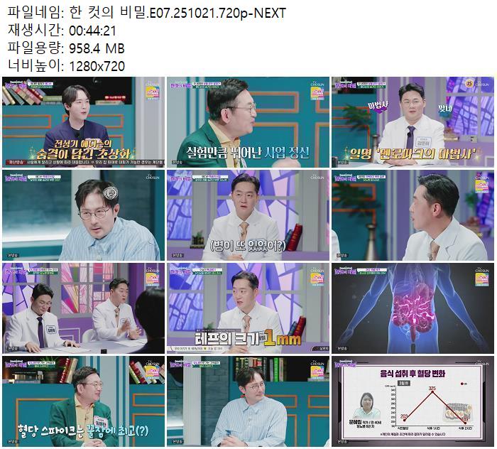 | 한 컷의 비밀.E07.251021.720p-NEXT.mp4 | 958.4 M | 00:44:21 | 1280x720 |