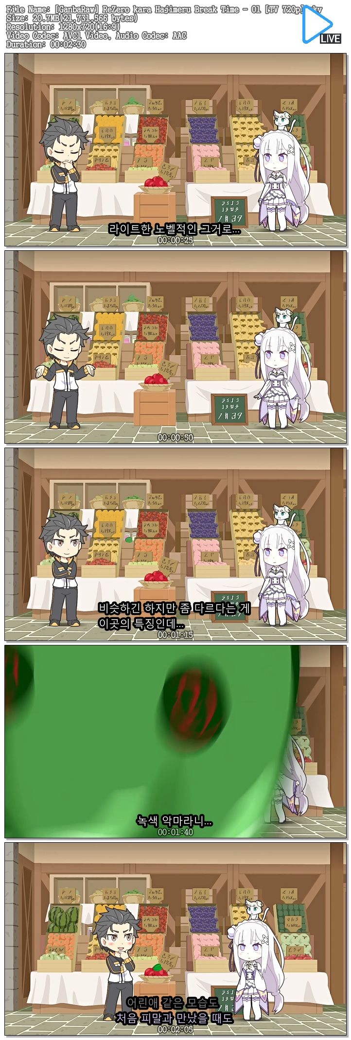 | [GanbaRaw] ReZero kara Hajimeru Break Time - 01 [TV 720p].mkv | 20.7 M | 00:02:30 | 1280x720 |