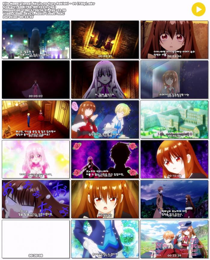| Tensei Akujo no Kuro Rekishi - 01 (720p).mkv | 711.6 M | 00:23:55 | 1280x720 |