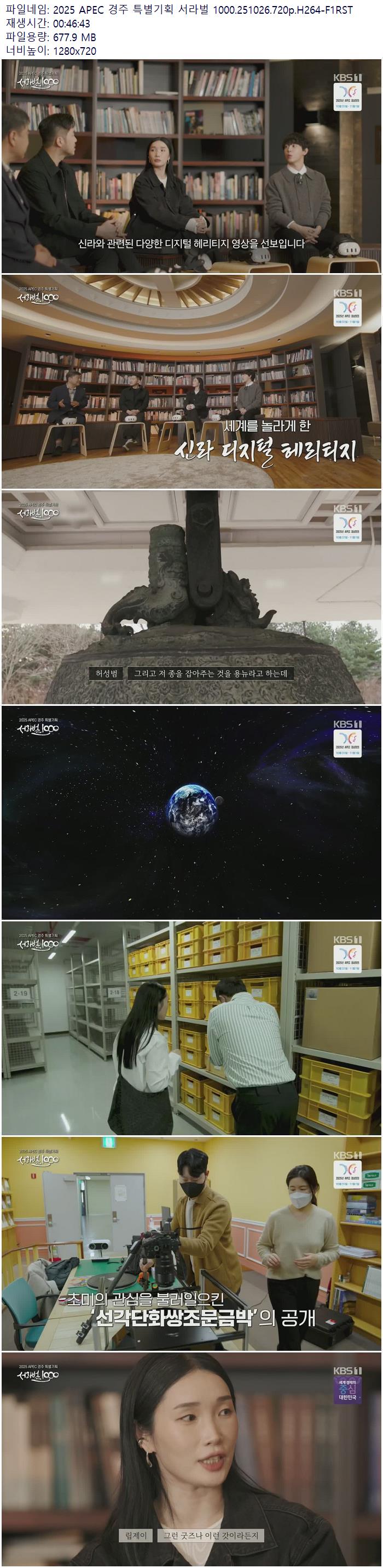 | 2025 APEC 경주 특별기획 서라벌 1000.251026.720p.H264-F1RST.mp4 | 677.9 M | 00:46:43 | 1280x720 |