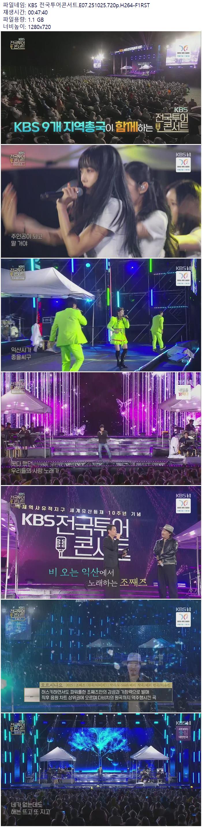 | KBS 전국투어콘서트.E07.251025.720p.H264-F1RST.mp4 | 1.1 G | 00:47:40 | 1280x720 |