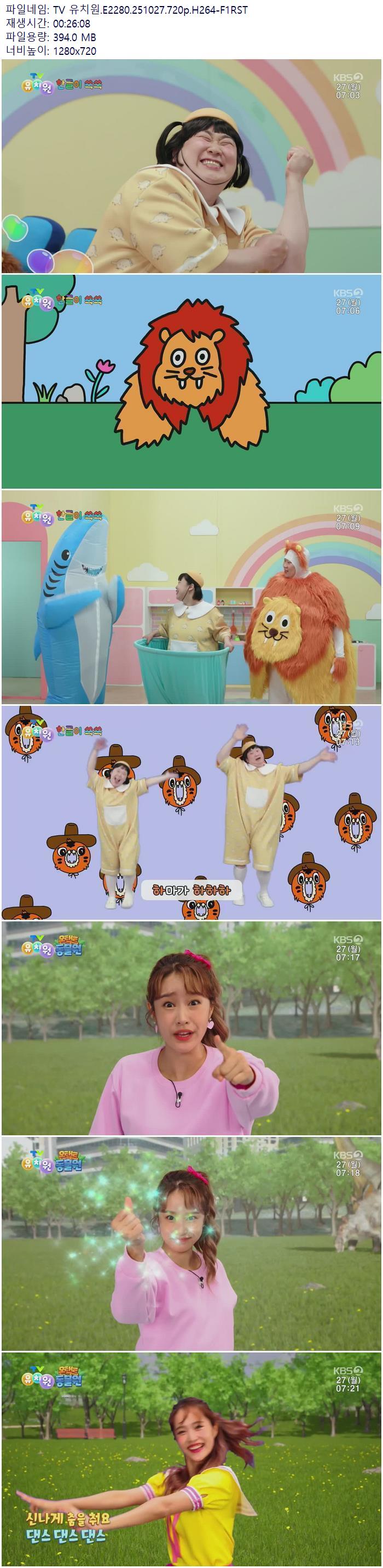 | TV 유치원.E2280.251027.720p.H264-F1RST.mp4 | 394 M | 00:26:08 | 1280x720 |