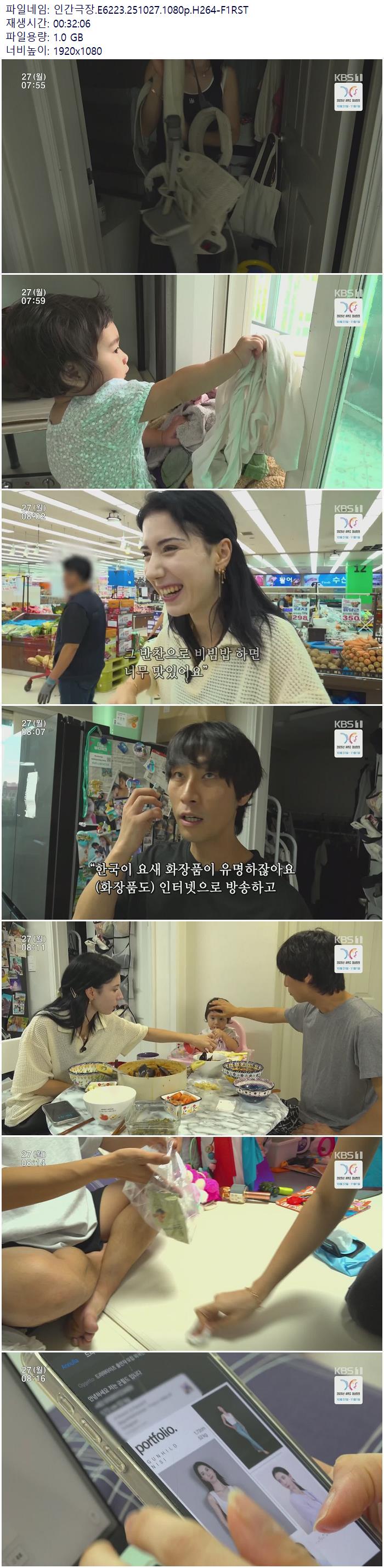 | 인간극장.E6223.251027.1080p.H264-F1RST.mp4 | 1 G | 00:32:06 | 1920x1080 |