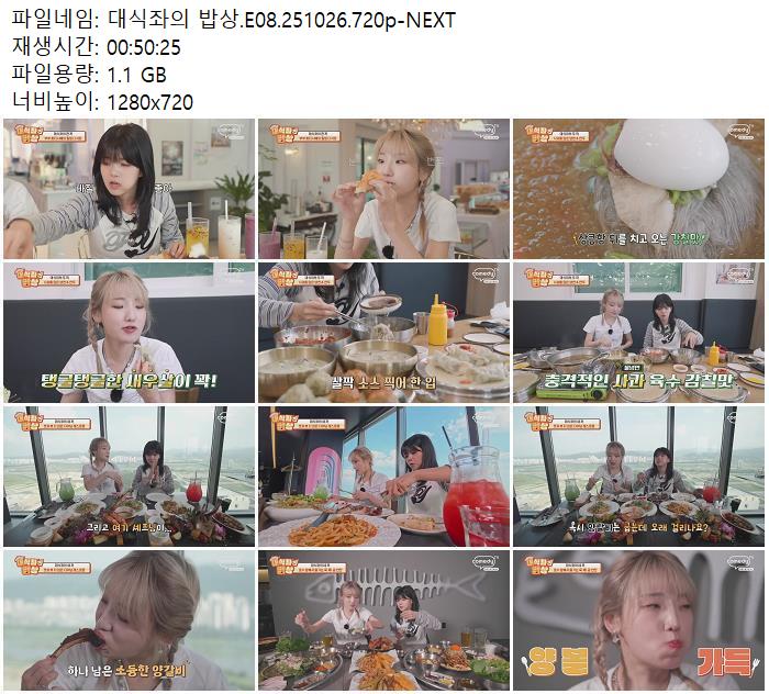 | 대식좌의 밥상.E08.251026.720p-NEXT.mp4 | 1.1 G | 00:50:25 | 1280x720 |