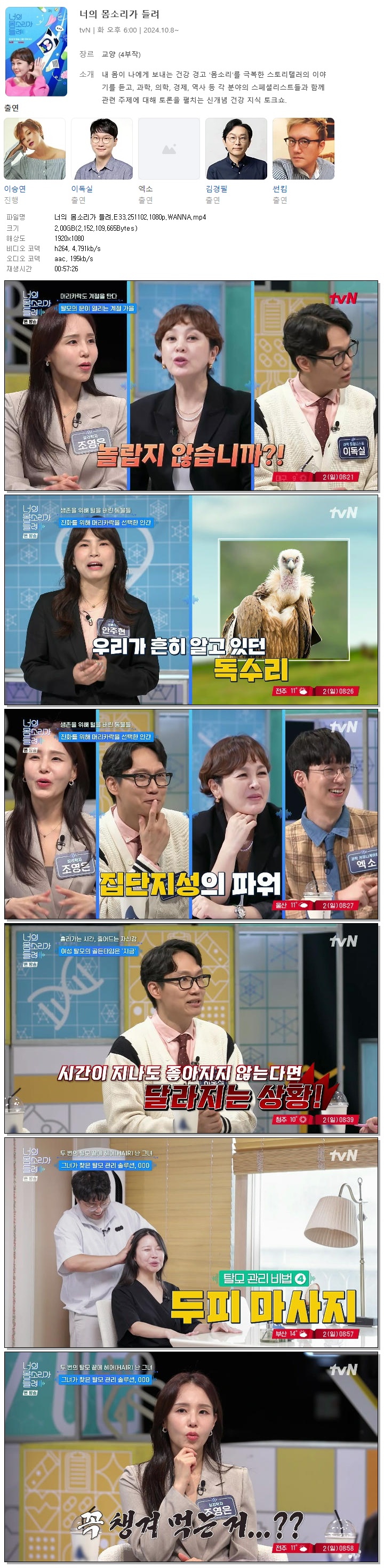 | [TVN] 너의 몸소리가 들려.E33.251102.1080p.WANNA[이승연, 이독실].mp4 | 2 G | 00:57:26 | 1920x1080 |