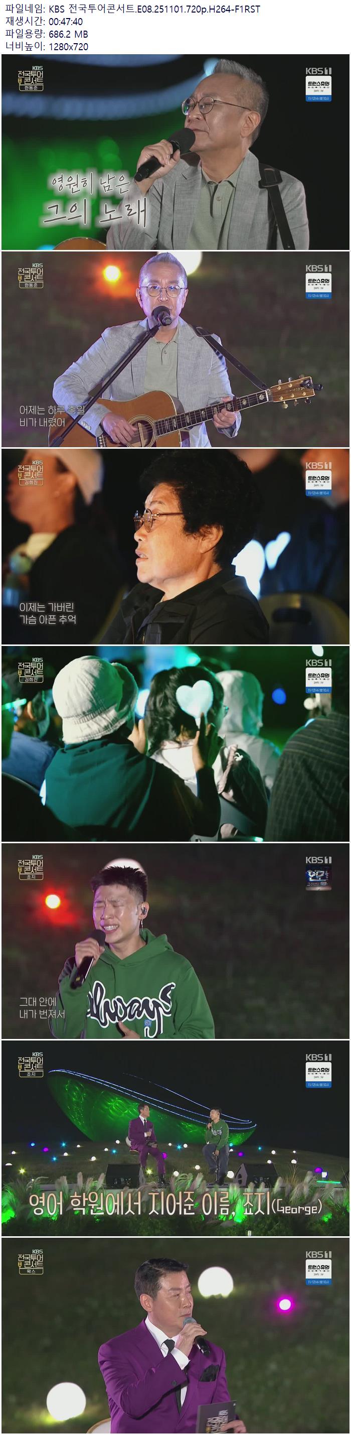 | KBS 전국투어콘서트.E08.251101.720p.H264-F1RST.mp4 | 686.2 M | 00:47:40 | 1280x720 |