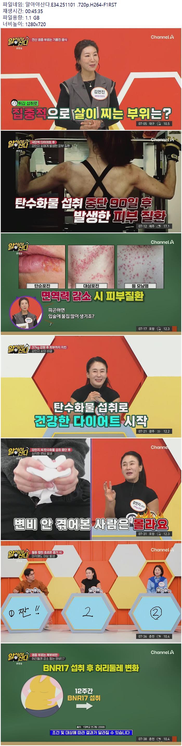 | 알아야산다.E34.251101 .720p.H264-F1RST.mp4 | 1.1 G | 00:45:35 | 1280x720 |