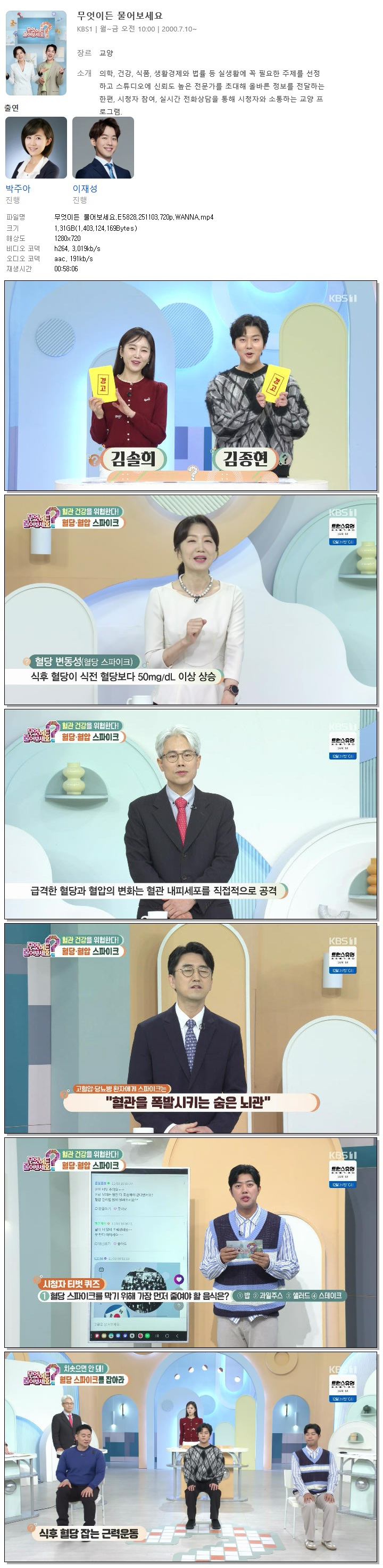 | [KBS1] 무엇이든 물어보세요.E5828.251103.720p.WANNA[박주아, 이재성].mp4 | 1.3 G | 00:58:06 | 1280x720 |