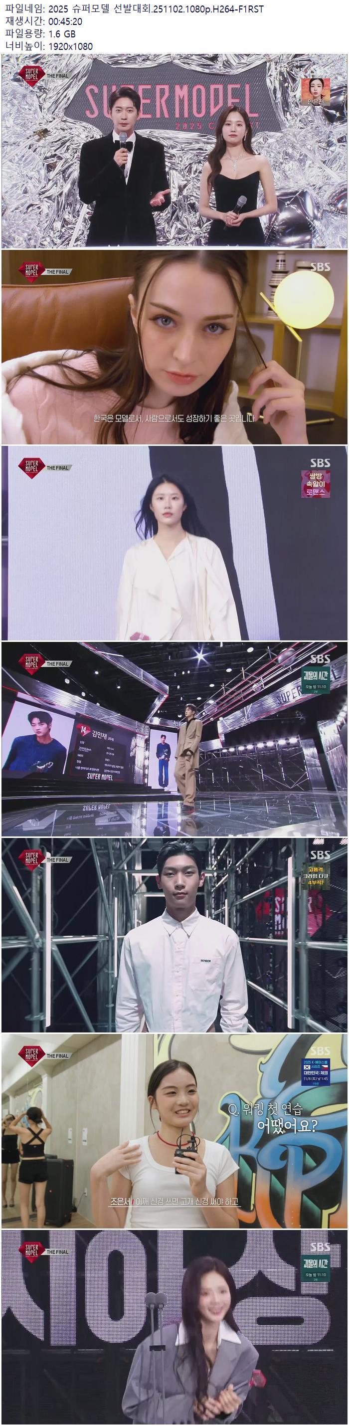 | 2025 슈퍼모델 선발대회.251102.1080p.H264-F1RST.mp4 | 1.6 G | 00:45:20 | 1920x1080 |