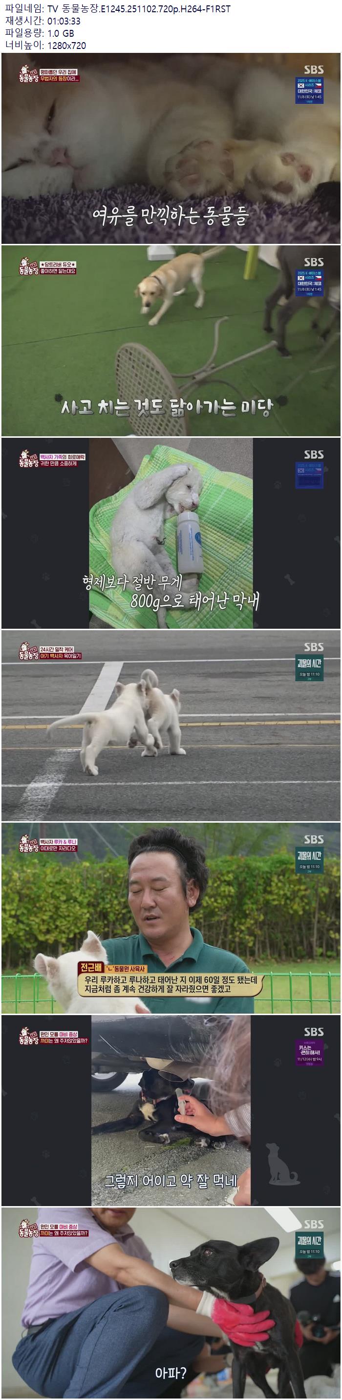| TV 동물농장.E1245.251102.720p.H264-F1RST.mp4 | 1 G | 01:03:00 | 1280x720 |