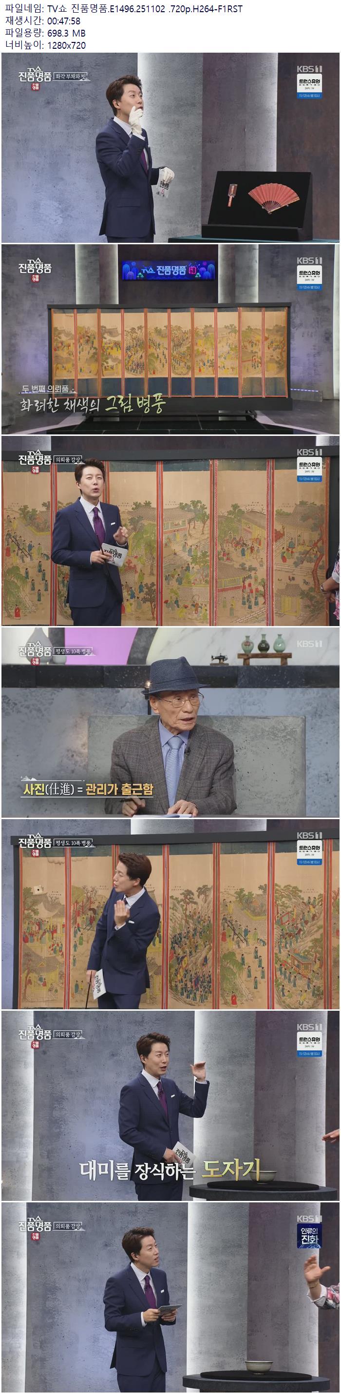 | TV쇼 진품명품.E1496.251102 .720p.H264-F1RST.mp4 | 698.3 M | 00:47:58 | 1280x720 |