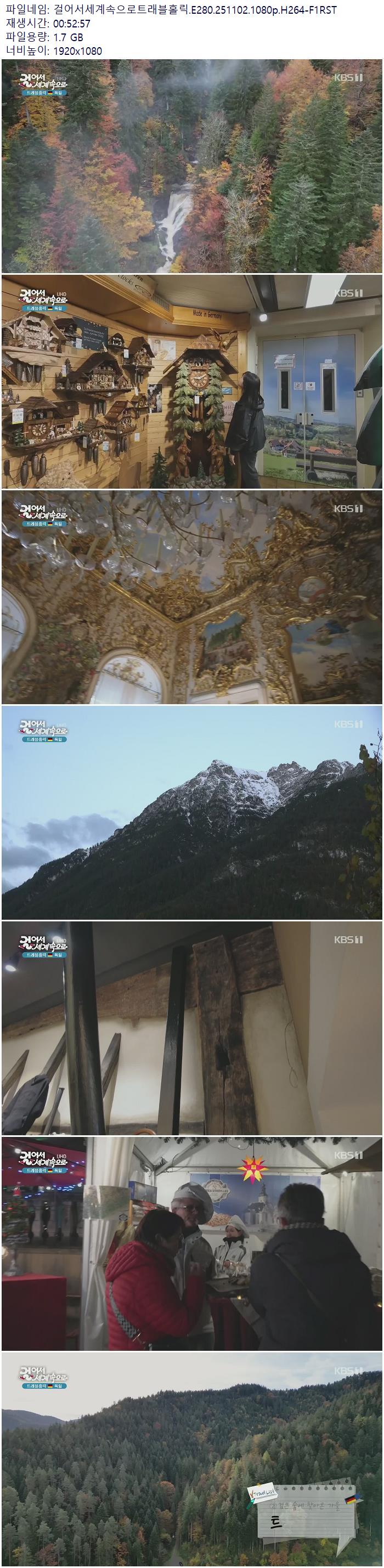 | 걸어서세계속으로트래블홀릭.E280.251102.1080p.H264-F1RST.mp4 | 1.7 G | 00:52:57 | 1920x1080 |