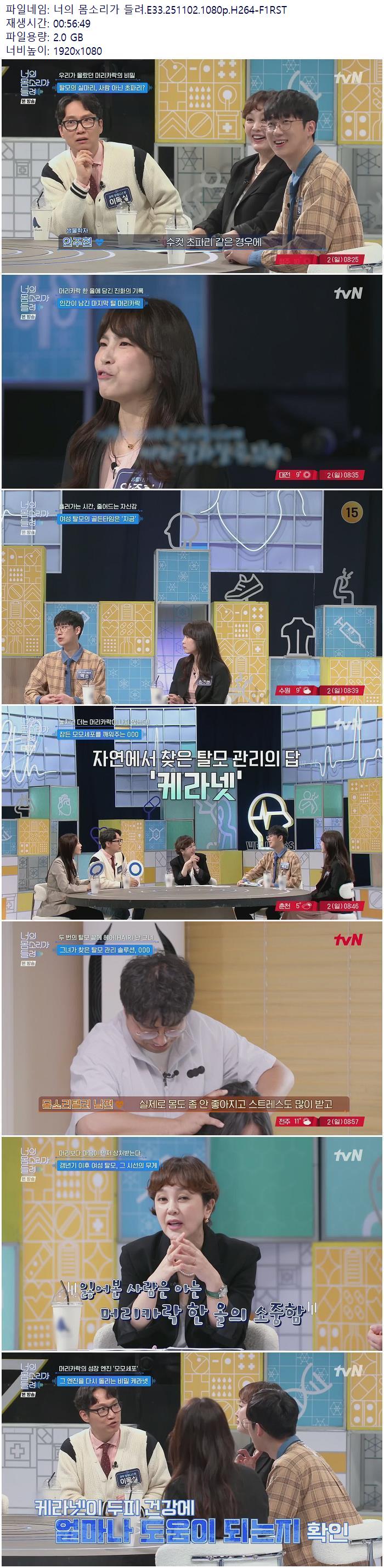 | 너의 몸소리가 들려.E33.251102.1080p.H264-F1RST.mp4 | 2 G | 00:56:49 | 1920x1080 |