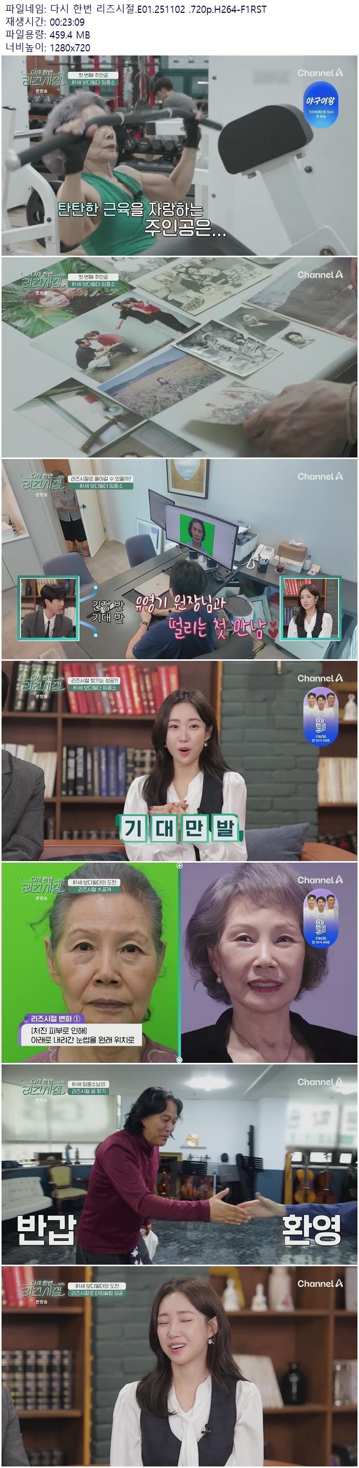 | 다시 한번 리즈시절.E01.251102 .720p.H264-F1RST.mp4 | 459.4 M | 00:23:09 | 1280x720 |