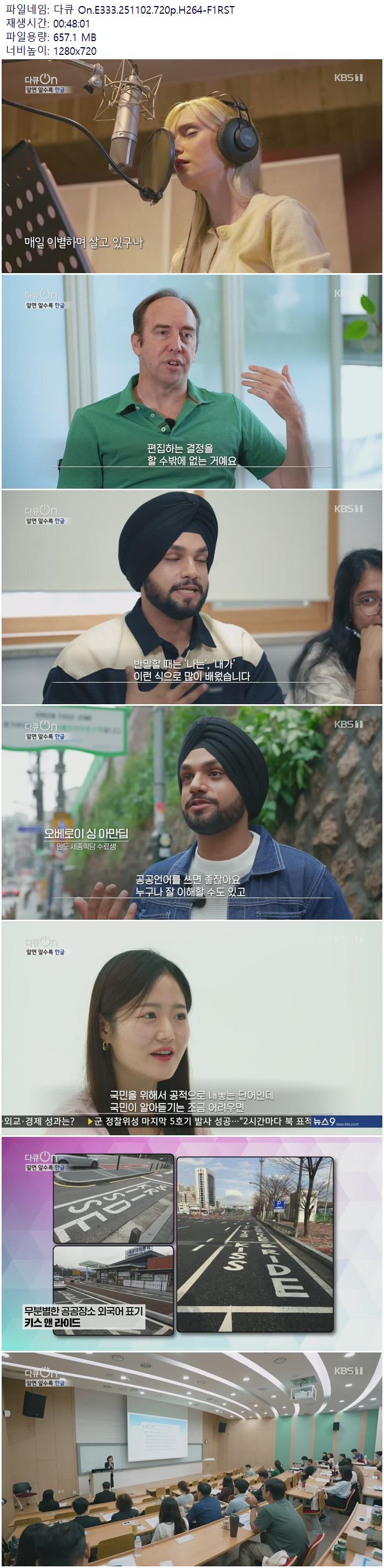 | 다큐 On.E333.251102.720p.H264-F1RST.mp4 | 657.1 M | 00:48:01 | 1280x720 |