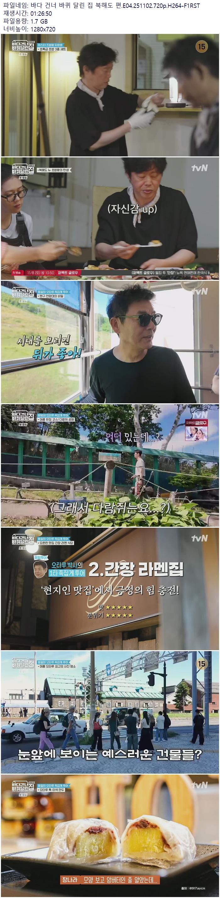 | 바다 건너 바퀴 달린 집 북해도 편.E04.251102.720p.H264-F1RST.mp4 | 1.7 G | 01:26:00 | 1280x720 |