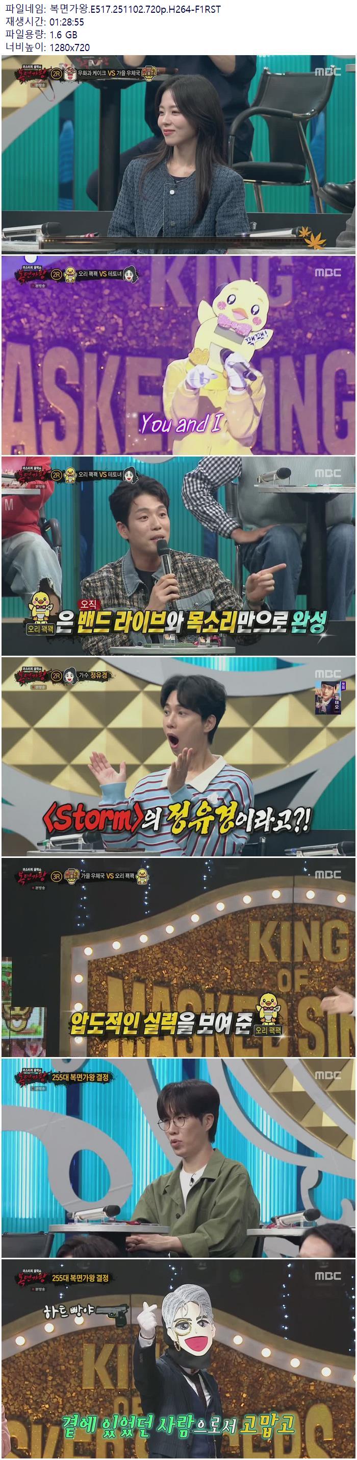 | 복면가왕.E517.251102.720p.H264-F1RST.mp4 | 1.6 G | 01:28:00 | 1280x720 |