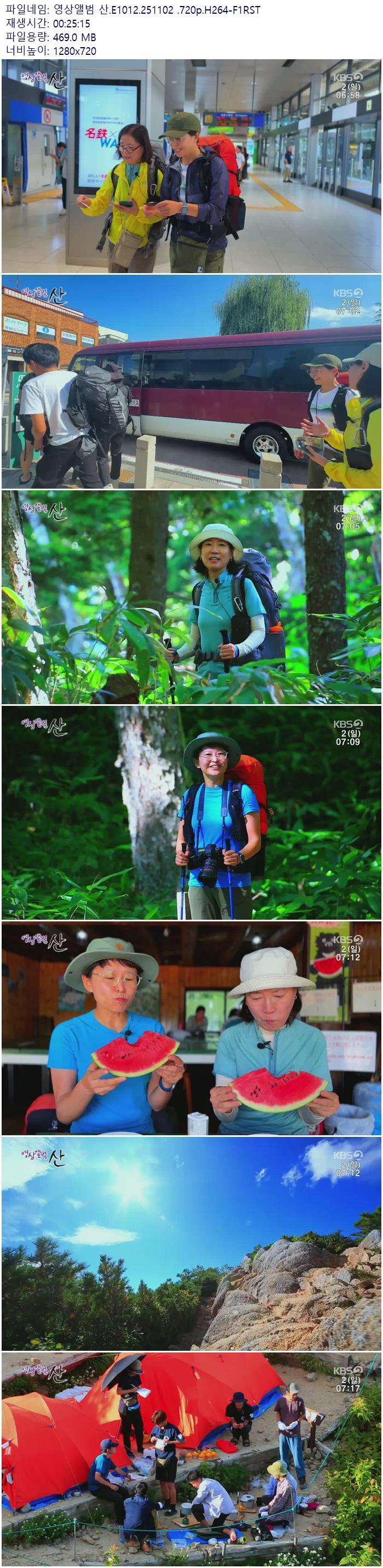 | 영상앨범 산.E1012.251102 .720p.H264-F1RST.mp4 | 469 M | 00:25:15 | 1280x720 |