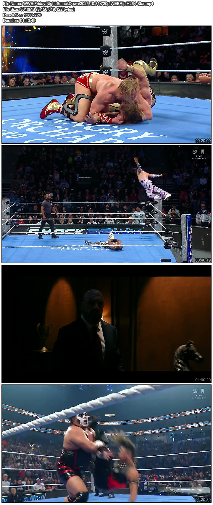 | WWE.Friday.Night.SmackDown.2025.10.31.720p.WEBRip.H264-Star.mp4 | 2.9 G | 01:40:00 | 1280x720 |